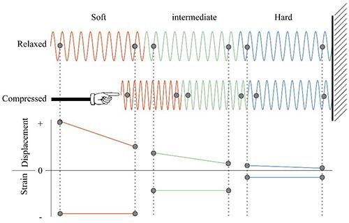 Ultrasound elastography are techniques to estimate the biological tissue mechanical properties by measuring local tissue deformations (strain) when subjected to a (known) force or by inducing a shearwave in the tissue (SWI). In strain imaging, tissue that undergoes large deformation/high strain can be considered soft (Figure) compared to hard tissue that shows low strain. In SWI, the propagation speed of the shear wave is directly related to Young's modulus of the tissue.